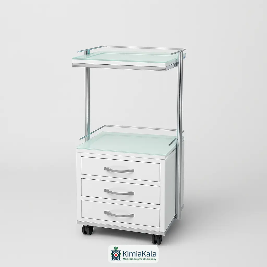 ترالی زیبایی سه کشو دو طبقه شیشه ای یک انتخاب ایدهآل برای محیطهای درمانی و زیبایی است که نیاز به نظمدهی و دسترسی آسان به تجهیزات دارند. این ترالی با طراحی مدرن و کاربردی، مخصوصاً برای استفاده در کلینیکها و بیمارستانها طراحی شده است. بهویژه در کنار تختهای درمانی، این ترالی میتواند محل نگهداری ابزار و وسایل پزشکی، زیبایی یا لوازم شخصی بیمار را به شکلی سازماندهیشده فراهم کند. با ویژگیهای خاصی چون کشوهای جادار و طبقات شیشهای مقاوم، این محصول نه تنها از نظر عملکردی بسیار کارآمد است، بلکه در زیبایی و نظم محیط نیز تأثیر زیادی دارد.این ترالی بهطور خاص برای کسانی که به دنبال یک وسیله کاربردی و در عین حال شیک برای بهبود عملکرد در محیطهای درمانی و بیمارستانی هستند، طراحی شده است.